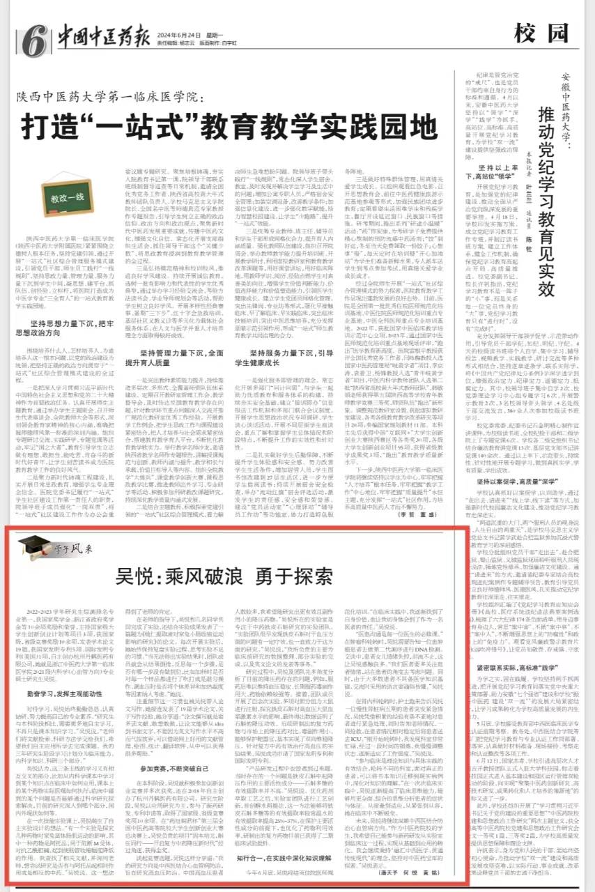 未来,吴悦将继续深耕中西医结合防治心血管病方向。“作为中医药院校的学生,我希望自己能参与新药研发从实验室到临床这一过程,实现从基础到应用的转化。我会继续秉持‘融汇中西医学,贯通传统现代’的理念,坚持对中医药宝库的探索。”吴悦表示。
