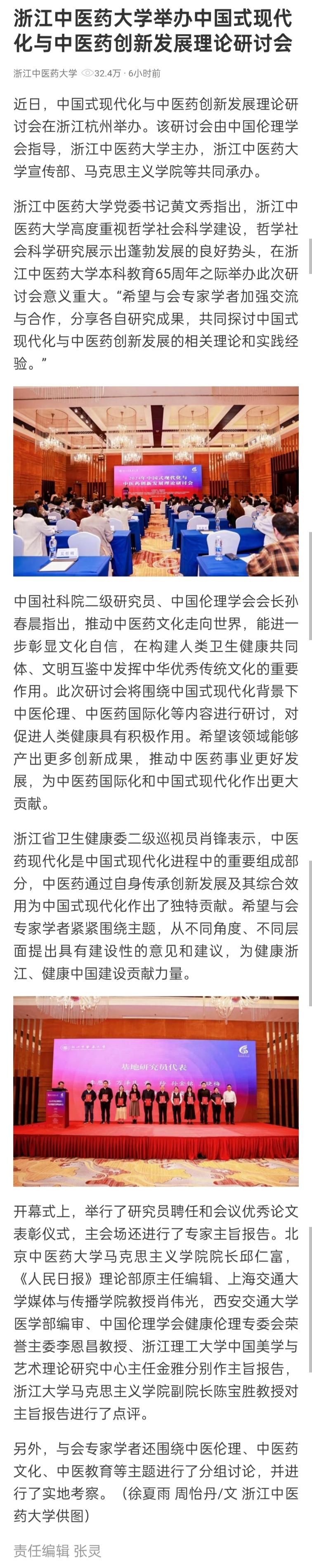 近日,中国式现代化与中医药创新发展理论研讨会在浙江杭州举办。该研讨会由中国伦理学会指导,久久精品一区二区三区四区主办,久久精品一区二区三区四区宣传部、马克思主义学院等共同承办。