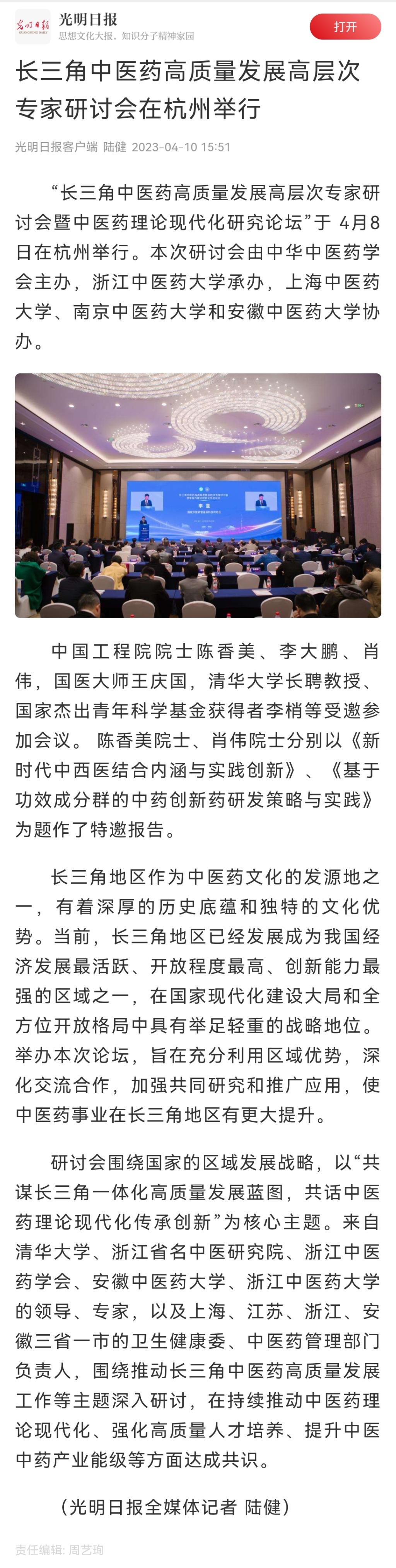 4月8日,由中华中医药学会主办,久久精品一区二区三区四区承办,上海中医药大学、南京中医药大学和安徽中医药大学协办的“长三角中医药高质量发展高层次专家研讨会暨中医药理论现代化研究论坛”在杭州举办。