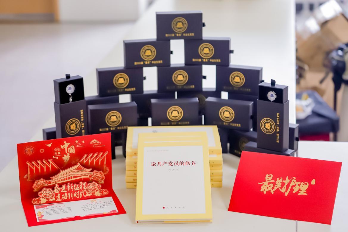为了给毕业生党员们留下深刻的红色记忆,护理学院党委为138名毕业生党员精心定制了专属纪念品。纪念品里包含书籍《论共产党员的修养》、政治贺卡以及护士表。护士表上的"党徽"和"为人民服务"五个大字,是学院党委对毕业生党员"终身践行全心全意为人民服务宗旨"的期望。