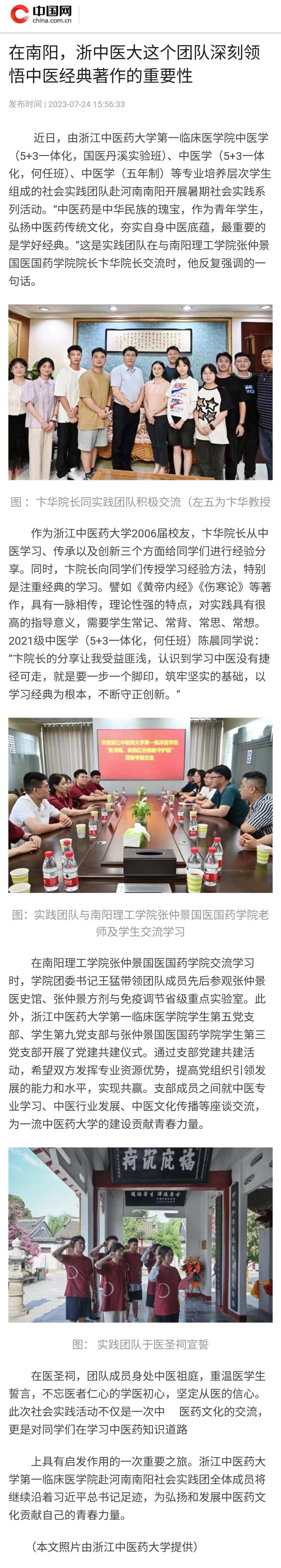 中国网:在南阳,浙中医大这个团队深刻领悟中医经典著作的重要性