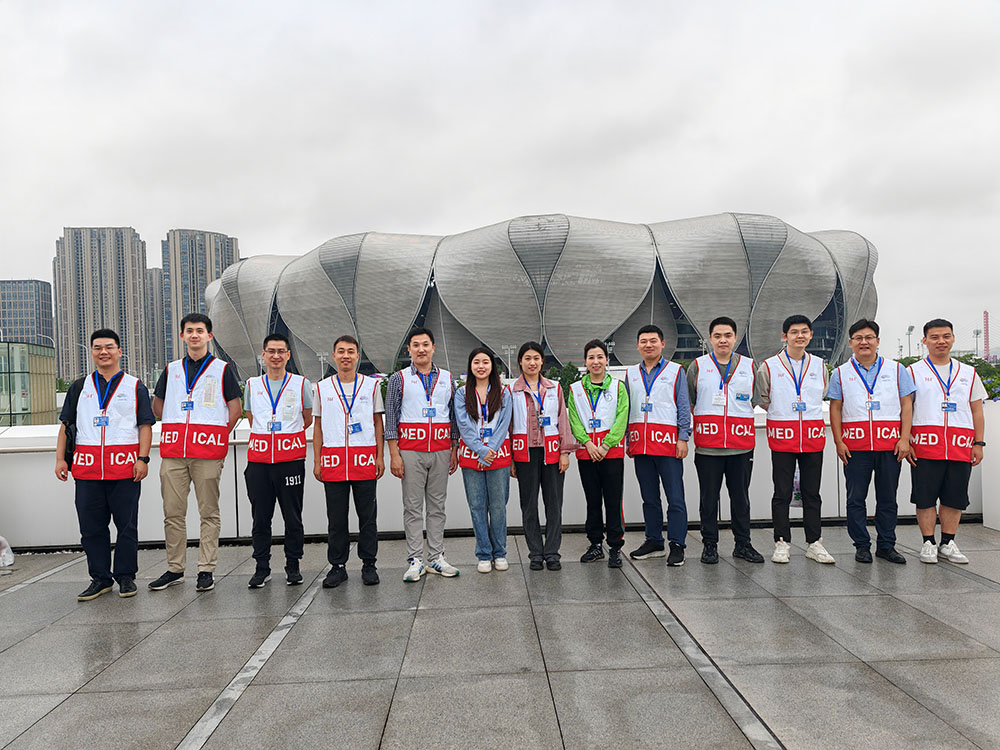 学校派出90名医护人员承担13个比赛和训练场馆的医务室医疗保障任务,派出63人次承担场馆和开闭幕式的急救车保障工作,57人次承担其他保障工作。附属第一医院、附属第三医院派出6名推拿医师在主媒体中心中医药文化体验馆开展推拿服务。