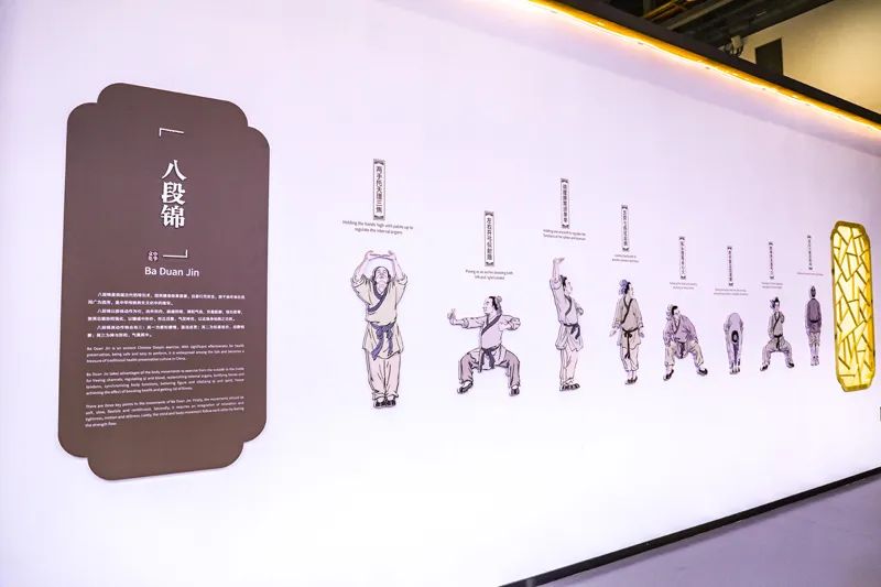 文化是一种内在的精神力量。它无声地浸润思想,最终又落脚于实践。体验馆所营造的浓郁中医药文化氛围,引导着参观者前来体验中医药养生实践。馆中安排了各种形式的活动,重头戏则是八段锦演练和推拿体验。