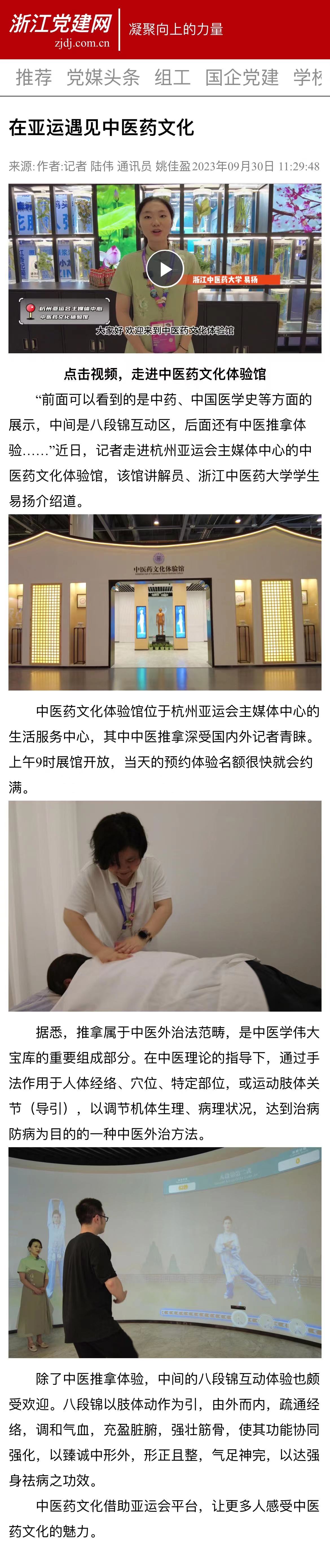 中国中医药报、浙江党建网、健康报:感受亚运“中医药文化之美”——探访杭州亚运会主媒体中心中医药文化体验馆