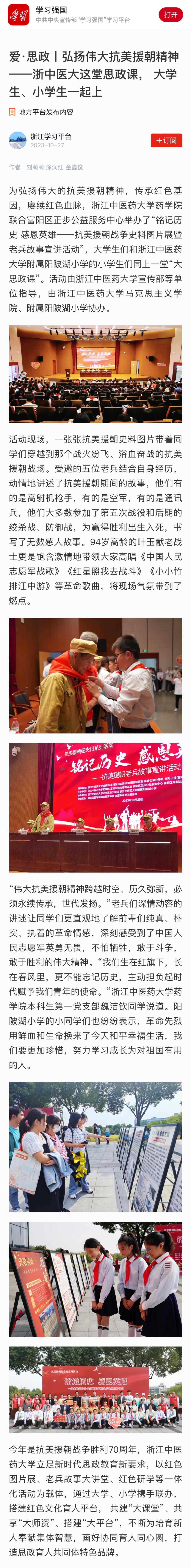 爱·思政丨弘扬伟大抗美援朝精神——浙中医大这堂思政课, 大学生、小学生一起上
