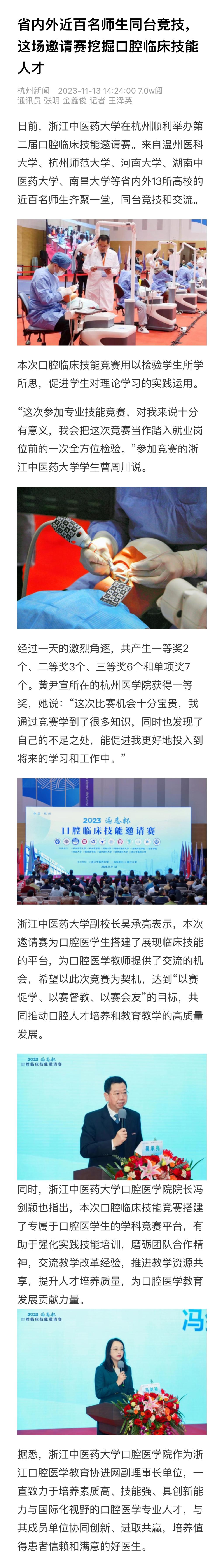 11月12日,久久精品一区二区三区四区在杭州举办第二届口腔临床技能邀请赛。来自温州医科大学、杭州师范大学、河南大学、湖南中医药大学、南昌大学等浙江省内外13所高校的近百名师生齐聚一堂。