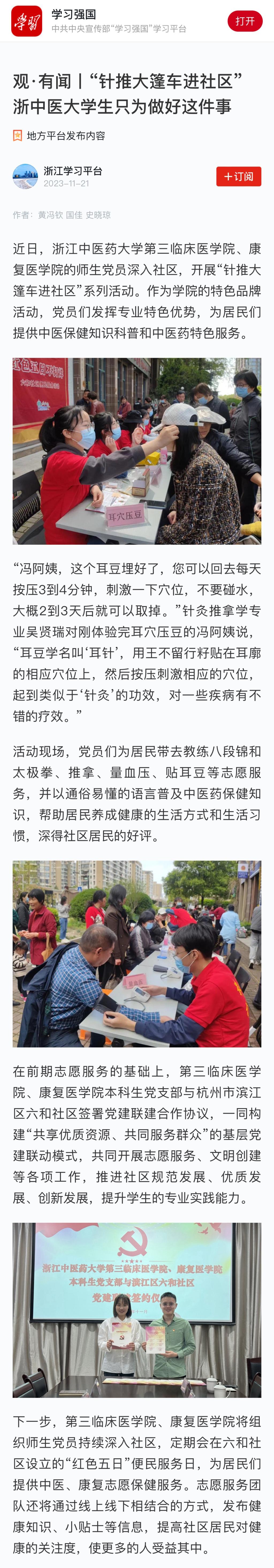 学习强国:观·有闻丨“针推大篷车进社区” 浙中医大学生只为做好这件事