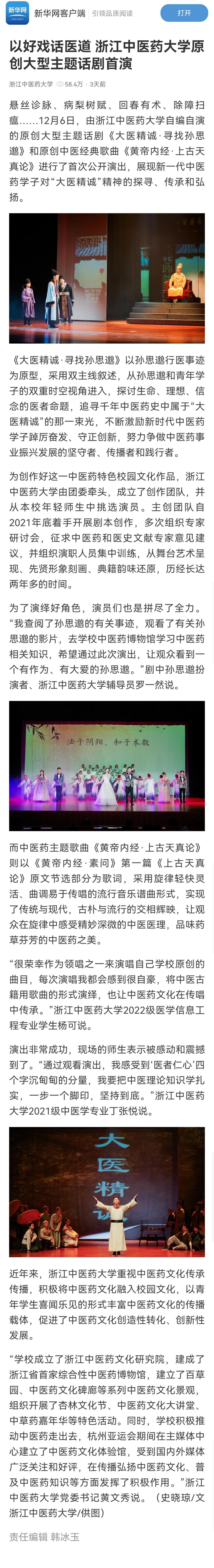 新华网:以好戏话医道 久久精品一区二区三区四区原创大型主题话剧首演