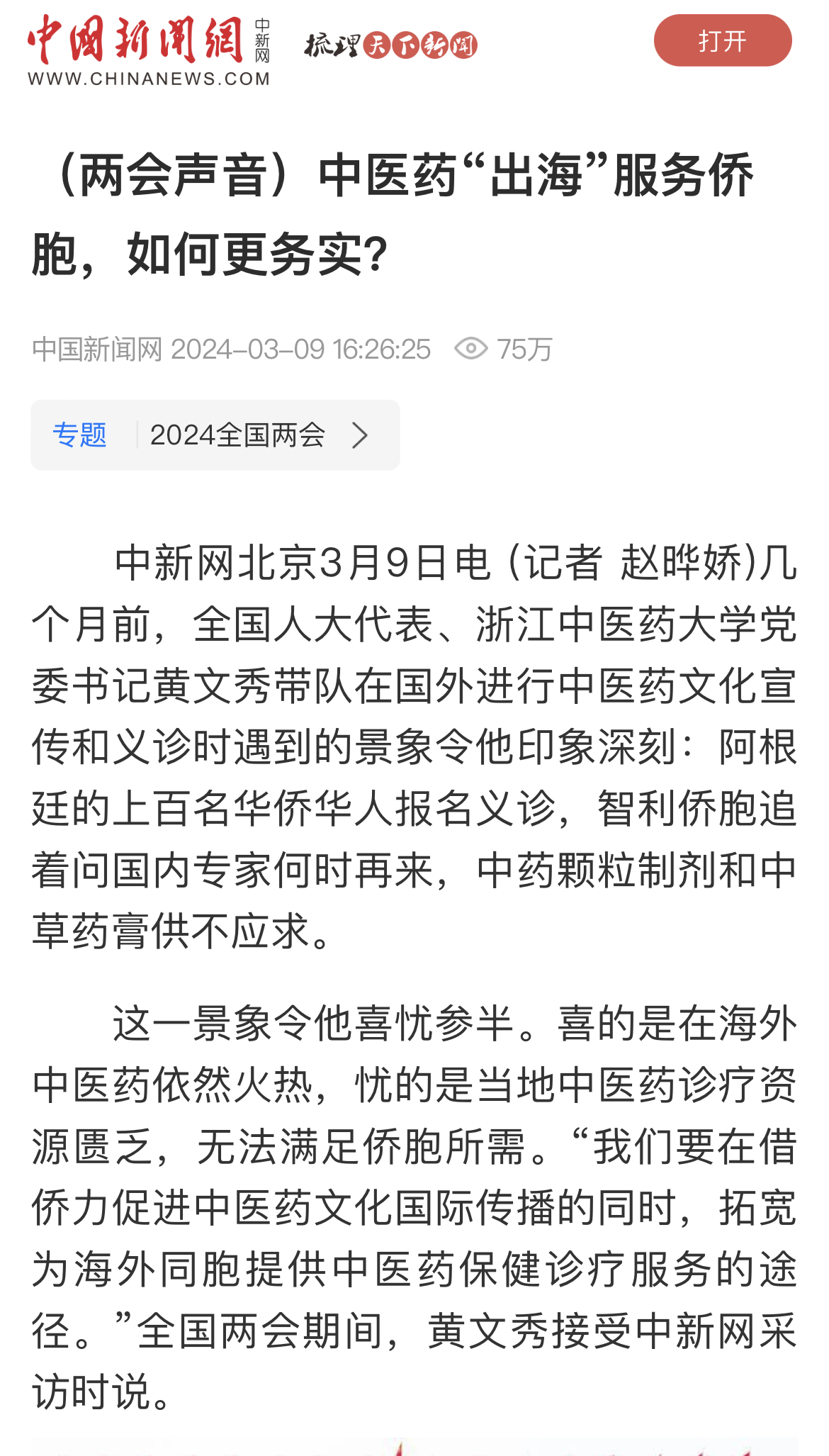 这一景象令他喜忧参半。喜的是在海外中医药依然火热,忧的是当地中医药诊疗资源匮乏,无法满足侨胞所需。“我们要在借侨力促进中医药文化国际传播的同时,拓宽为海外同胞提供中医药保健诊疗服务的途径。”全国两会期间,黄文秀接受中新网采访时说。