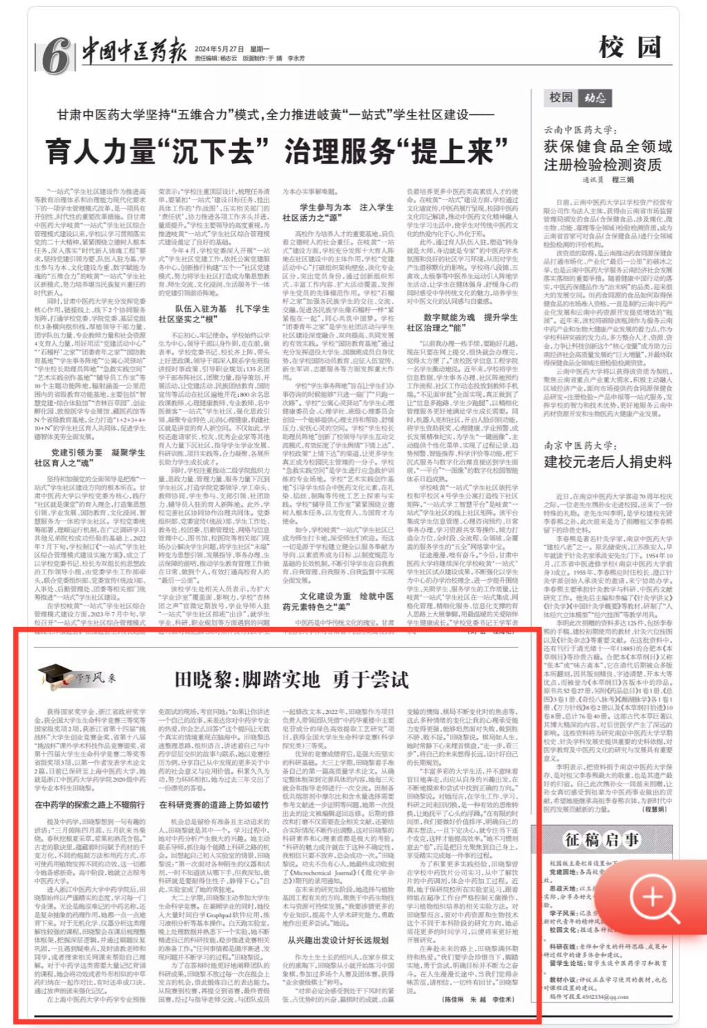 在未来的研究生阶段,她选择与植物基因工程有关的方向,聚焦于中药生物技术与资源可持续发展。“我要涉猎更多的专业知识,提高个人学术研究能力,勇敢地作出更多尝试。”她说。